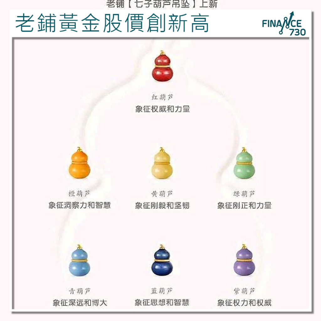 內媒指老鋪黃金推出結合童年經典IP「葫蘆娃」元素的七子葫蘆系列新品,採用特殊的高溫燒藍工藝,確保飾品長期配戴不會褪色。