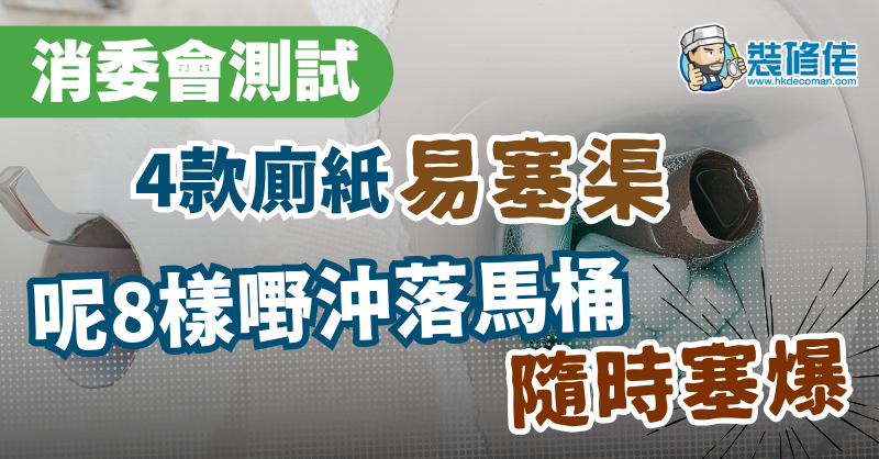 每天使用的廁紙,其實都暗藏塞渠風險?消委會曾發布過有關卷裝廁紙的測試報告,結果顯示有4款較難被沖散,一旦用量多但座廁沖水力不足,有可能會造成淤塞。此外,除了過於強靭的廁紙,裝修佬歸納了以下8類東西都切勿沖進馬桶,否則一旦塞渠後果可大可小。