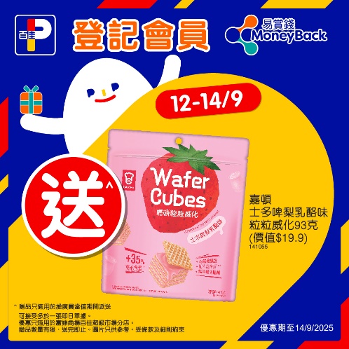 免費向新登記易賞錢App會員大派嘉頓士多啤梨乳酪味粒粒威化93克(總值$19.9)