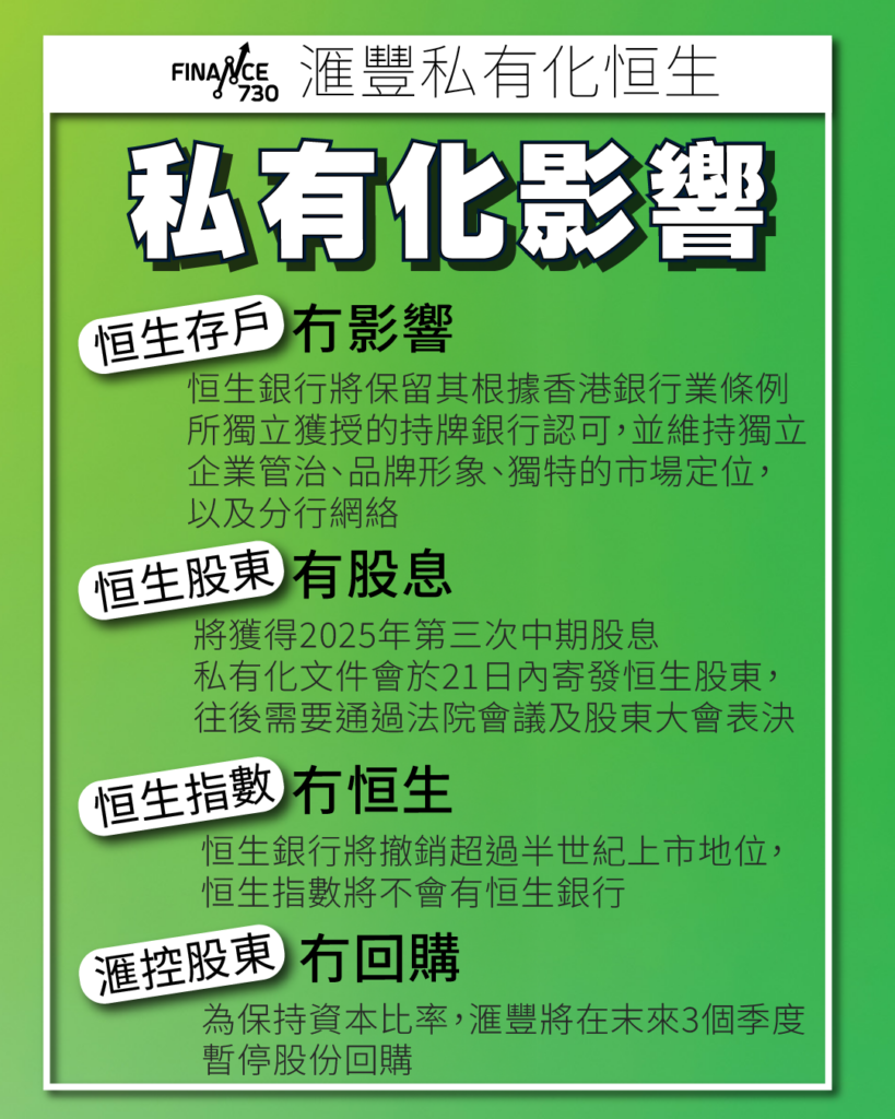 恒生私有化的影響|恒生存戶、恒生股東、恒生指數、滙控股東