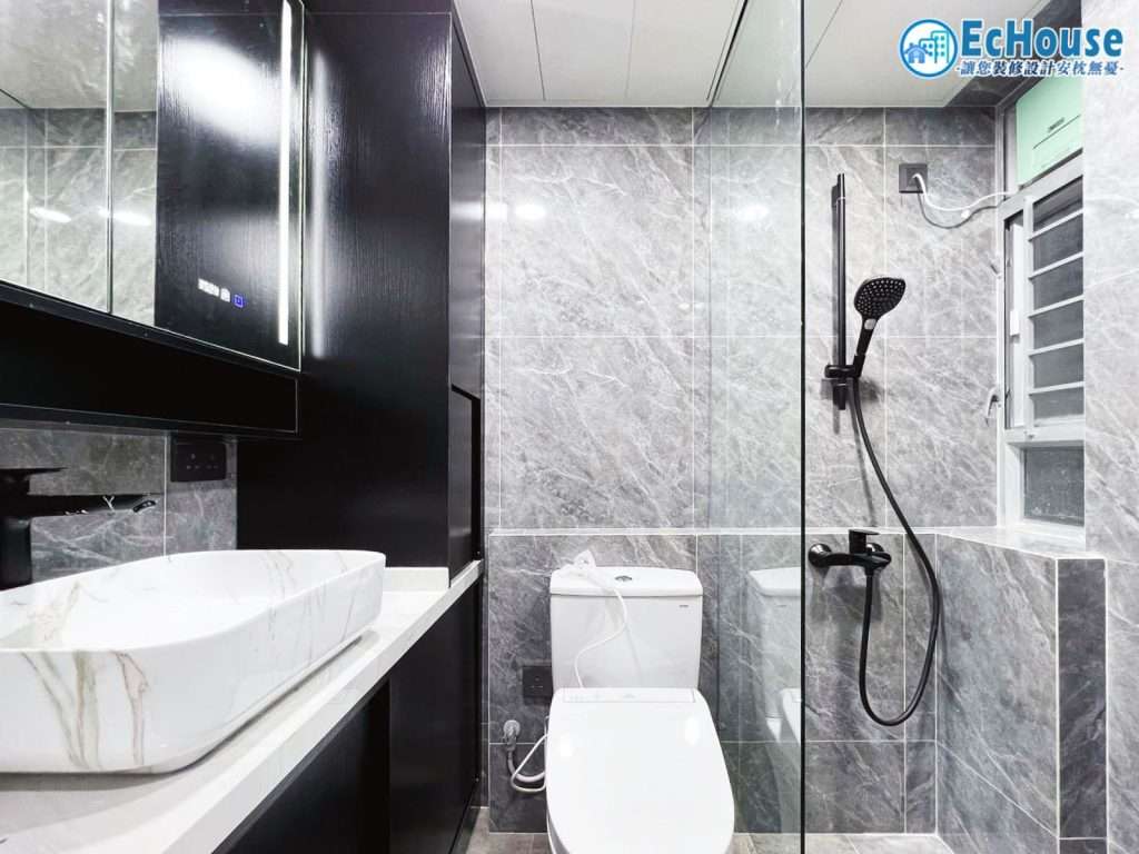 必斬:臥室反光冷色磚|淋浴區微晶石|客廳毛孔拋光磚