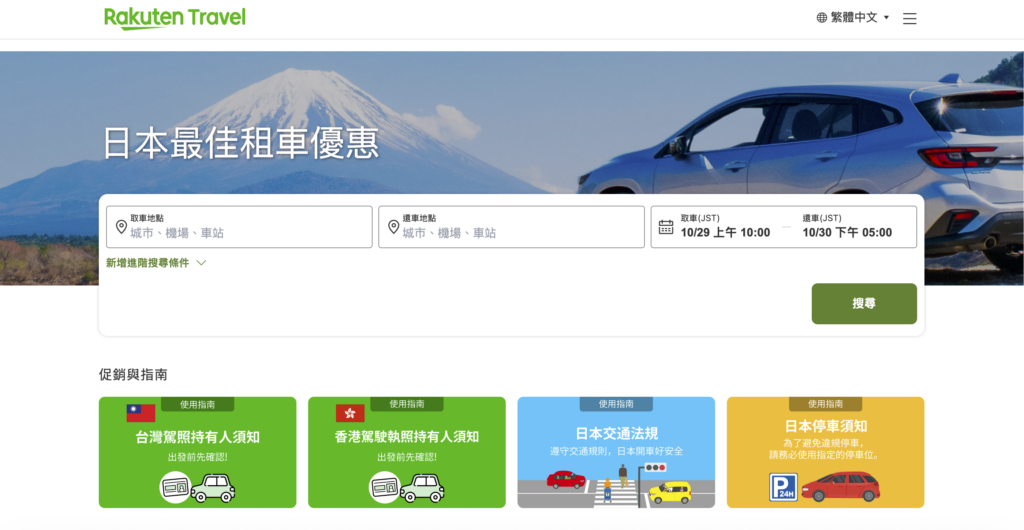Rakuten Travel香港平台近年已增設租車自駕項目,並計劃逐步引入更多日本國內旅遊服務項目。該平台表示,憑藉遍佈日本全國數千個租車據點的網絡,香港旅客可享受涵蓋住宿、租車等服務的一站式預訂體驗。展望未來,Rakuten Travel將與樂天集團旗下各項服務整合。