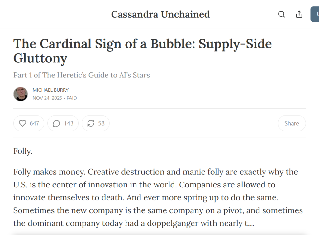「沽神」Michael Burry無疑是近期令黃仁勳造成壓力的原因之一,最新他在周一Substack再發表文章,指現在的NVDA就是千禧年互聯網泡沫時期的思科,警告市場正面臨災難性的過度供應與折舊陷阱。