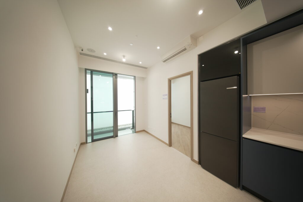 單位入門位置設玄關,配備鞋櫃與儲物空間。客飯廳間隔方正,採長方形開則劃分客飯廳位置,並以玻璃趟門連接露台,增加室內採光及通風。