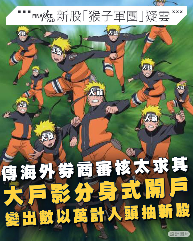 2026港股IPO延續去年盛況,新股中籤者賺個盆滿缽滿,不過有指動輒數十萬人認購背後,有「猴子軍團」利用灰色地帶開大量賬戶抽IPO。玩法是藉住開戶審核相對寬鬆的海外持牌小型券商大量開戶,再經香港持牌券商作中介提交申購訂單參與港股IPO,有KOL更引述傳言指「空殼人頭」規模是數以萬計。