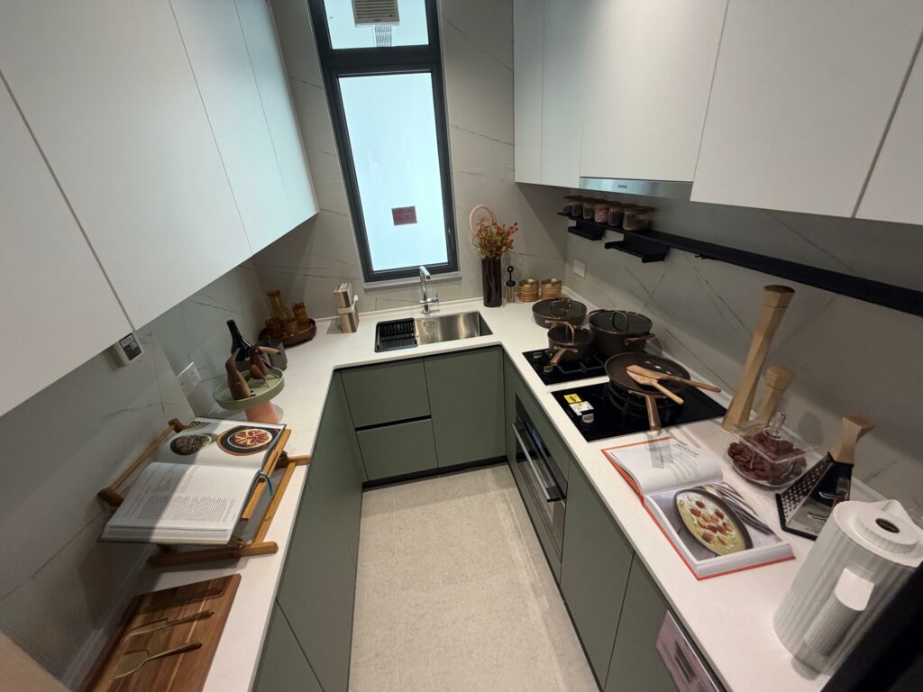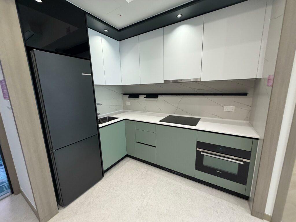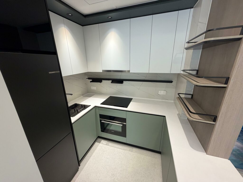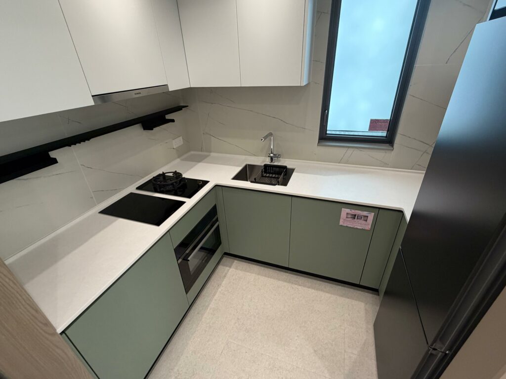 廚房採梗廚設計,配備Siemens嵌入式煤氣爐、抽油煙機、7合1智能微蒸烤焗爐及Bosch雪櫃,Siemens洗衣乾衣機隱藏於櫃內。