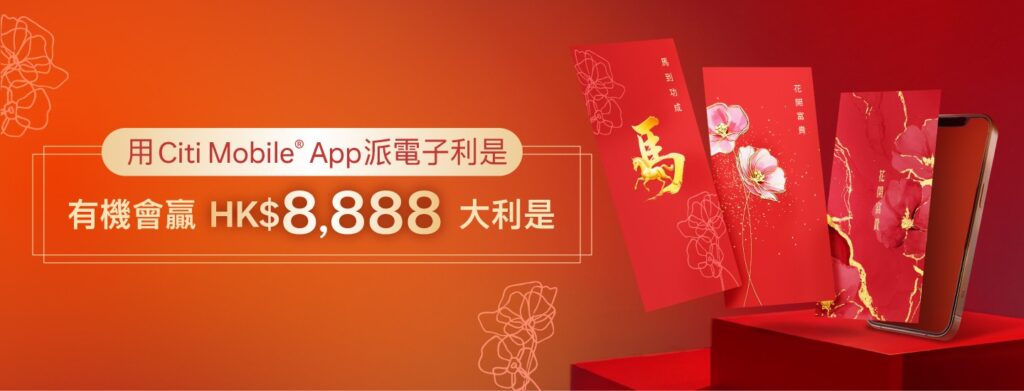 花旗香港宣布今年繼續推出電子利是服務,並舉辦「Citi派利是」大抽獎,客戶有機會贏取最高港幣8,888元獎金。