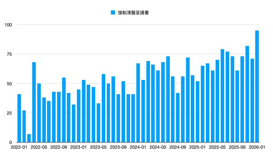 週五破產管理署公佈最新破產數據,個人破產申請略有回落,但法院發出的強制清盤令數接近100家,創單月新高。去年全年破產案件更是廿年最高。進入2026年後,不少大型品牌連鎖店,包括餐廳也加速倒閉。過年前小南國連續關閉多家店鋪,灣仔知名咖啡室「檀島咖啡」也宣布結業,甚至備受歡迎的蛋撻產品也停止販售。結業潮非但未減,農曆年後反而增加。