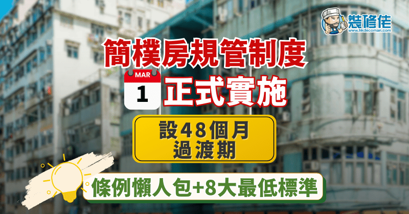 《簡樸房條例》下的規管制度將於3月1日正式實施,據悉已有業主陸續收回單位改裝。業主應如何為單位申請認證?居住環境又有何標準?裝修佬整合了條例重點的懶人包,讓你輕鬆掌握所有關鍵資訊。