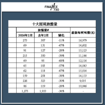 中原地產最新數據顯示,2025年2月全港…